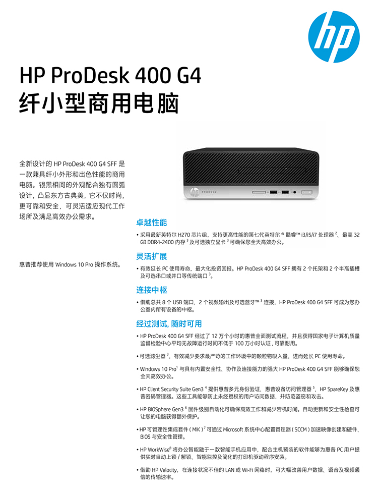全新 惠普(HP) ProDesk 400 G4 SFF 臺(tái)式機(jī)(i7-7700/16G/256G SSD/HD630核顯/P232 23英寸顯示器/Win10 Home)