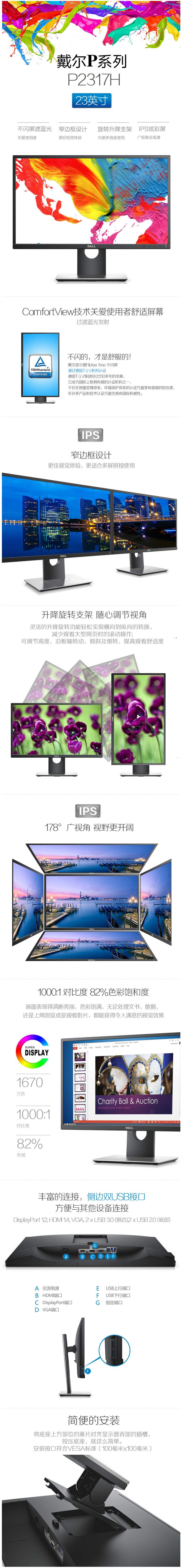 {aspcms:page}主體品牌戴爾(DELL)型號(hào)P2317H顯示面板類型IPS面板尺寸23英寸屏幕比例16:9(寬屏)最佳分辨率1920x1080響應(yīng)時(shí)間6ms點(diǎn)距0.265mm色數(shù)16.7M亮