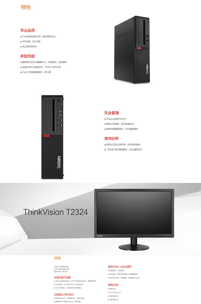 全新 聯(lián)想(Lenovo) M710s 商用臺式機(i7-7700/16G/256G SSD/GT730 2GB獨顯/T2324 23英寸顯示器)